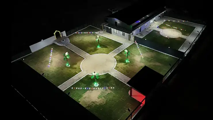 Palm garden ve Kır bahçesi düğün salonları alanlar itibarı ile kapalı ve açık düğün mekânları olan tesiste, 500 kişilik ve 1200 kişilik düğünlere ev sahipliği yapabilecek mekan hakkında bilgi veren işadamı Abdülaziz Çıbuk şunları söyledi;