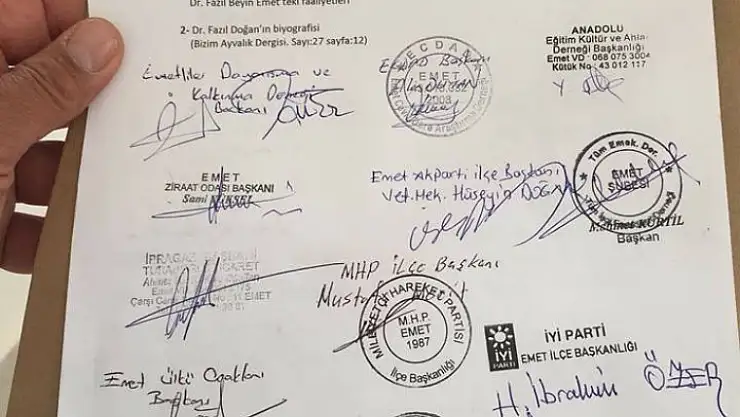 Emetliler dayanışma ve kalkınma derneği Kütahya valiliği kanalıyla il sağlık müdürlüğüne yazdığı yazıyla Emetin yeni hastane isim talebini yetkililere iletti.Gerekçeli belgelerin eklendiği yazıya başta parti başkanları olmak üzere,muhtarlar, stk başkanlarıda imzaladı.