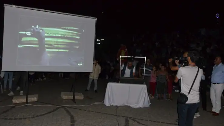 Emet ilçesinde Türkiye'de bulunan dört kum sanatı sanatçısından biri olan Tarkan Köylü'nün gösterisi ilgiyle izlendi.