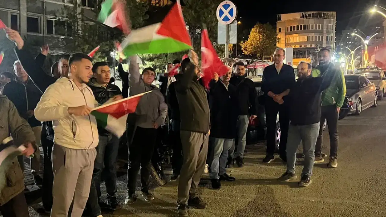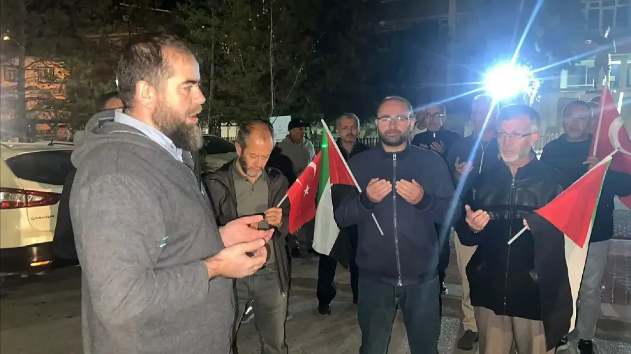 Ellerine Türk ve Filistin Bayrakları ile Emet hükümet meydanında toplanan vatandaşlar Filistin için dua edip İsrail aleyhine sloganlar attılar.