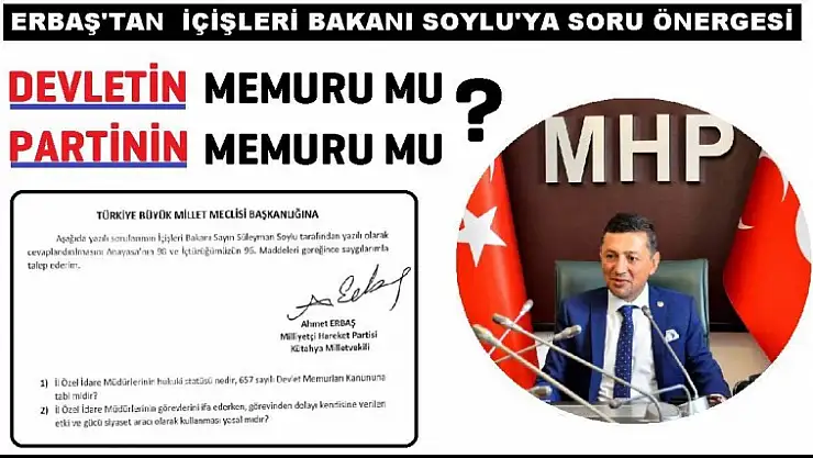 Mhp Kütahya Milletvekili Ahmet Erbaş İç işleri bakanlığına verdiği önerge ile özel idare müdürlerinin partinin mi devletin mi müdürü olduklarını sordu