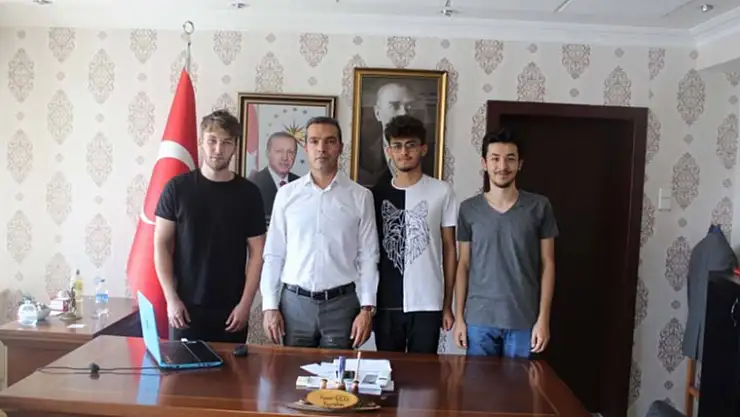 Üniversiteyi kazanan öğrencilerden İsmail ÖZDOĞAN (İstanbul Üniversitesi Hukuk Fakültesi), Rıza Tunç UZUN (Trakya Üniversitesi Diş Hekimliği Fakültesi) ve Berkay GÖKDUMAN (Anadolu Üniversitesi Eğitim Fakültesi) Kaymakam Hasan ÇİÇEK’ e teşekkür ziyaretinde bulundular.